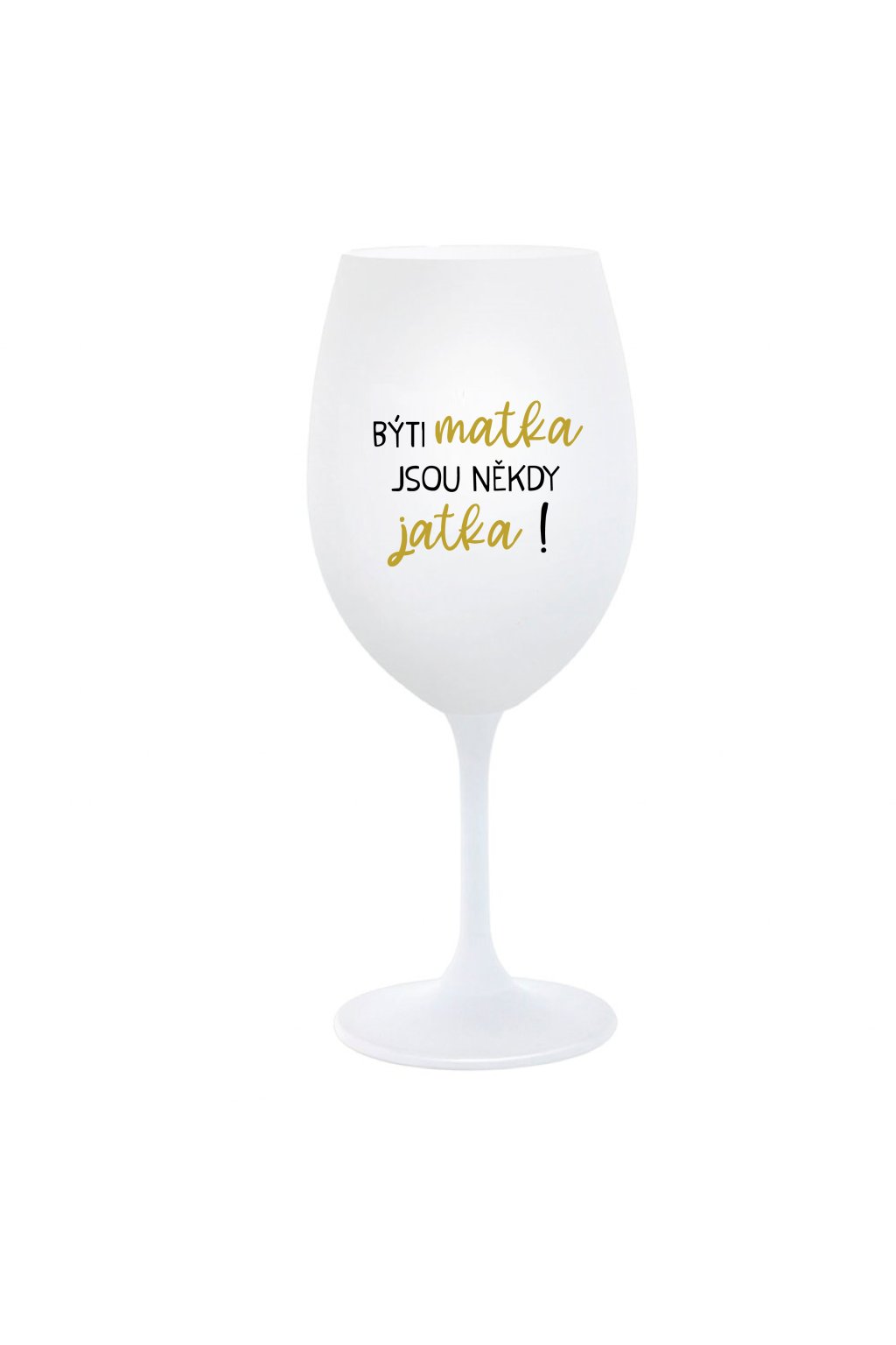 BÝTI MATKA JSOU NĚKDY JATKA! - bílá sklenice na víno 350 ml